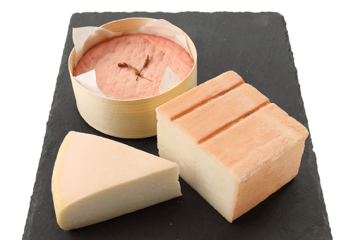 もちもちとした弾力あるウォッシュチーズ。口の中ではもっちりと溶け、旨みが広がっていきます。薄いオレンジ色の表皮も一緒に召し上がれます。